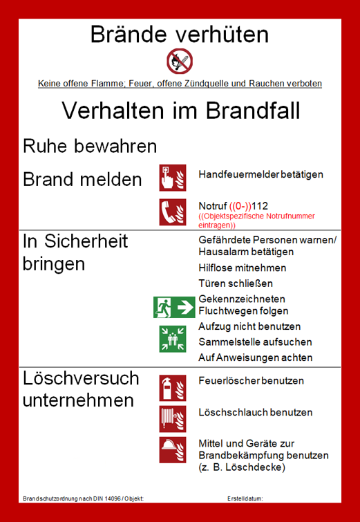 – Regelungen für Unterweisung, Verhalten im Brandfall